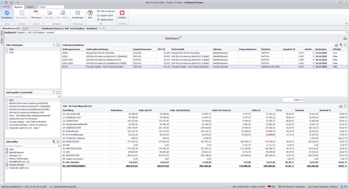 Pro-Bau/S® AddOne ist eine modulare ERP-Bausoftware der Husemann & Fritz GmbH.